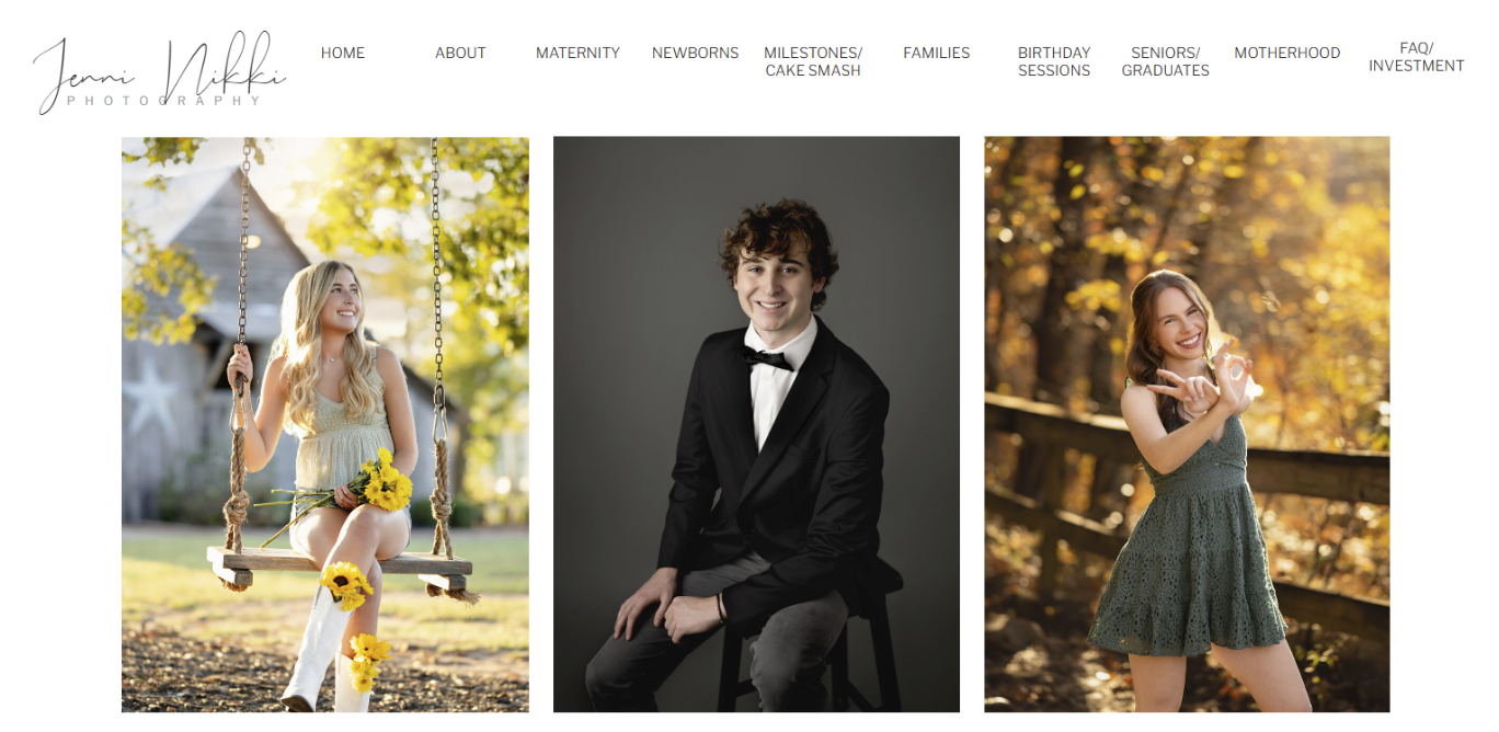 Her studio is in Woodstock, about 30 miles north of Atlanta, so it's a drive from the city, and if you want a 20-minute pre-session consultation to plan your vision and the option to see your photos on a big screen at an in-person reveal, Jenni Nikki's process is built for graduates who want that level of personal attention.